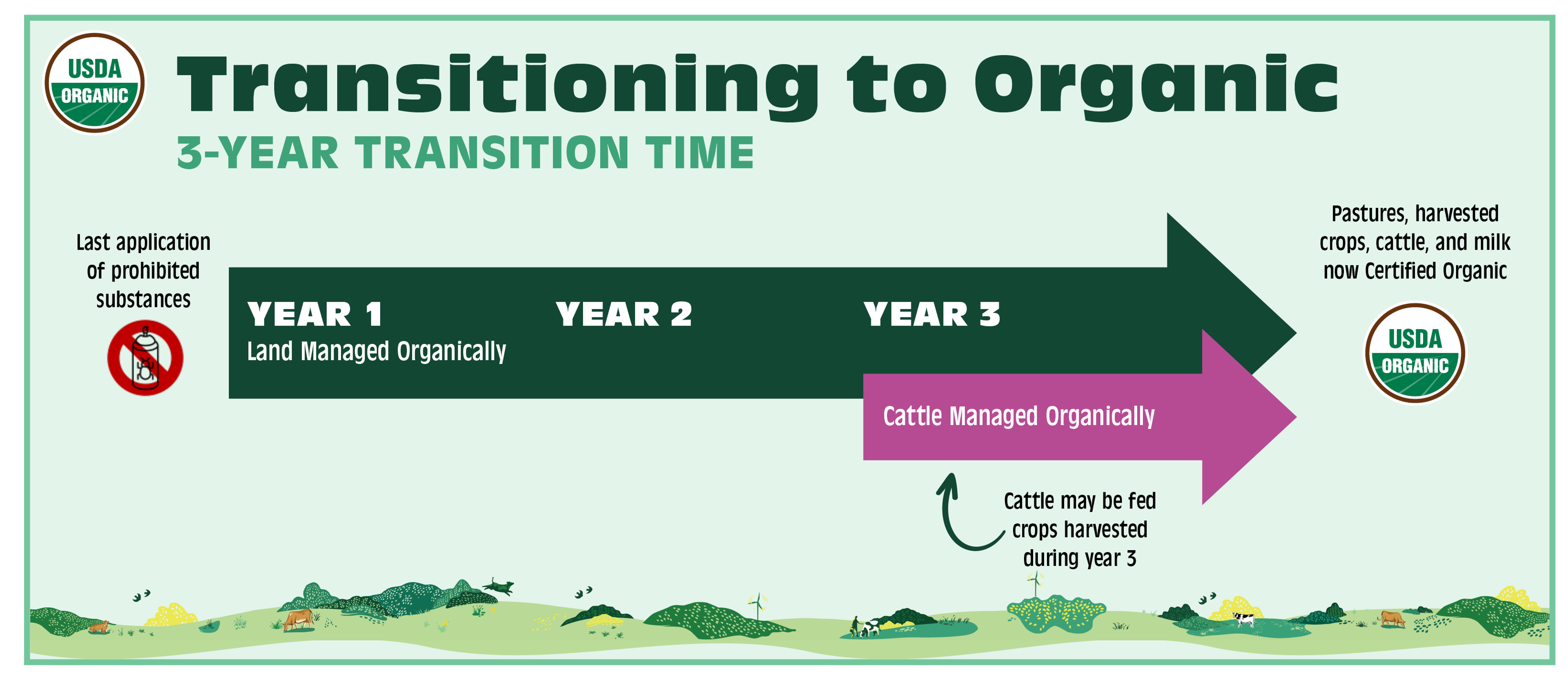 Transitioning to organic production can take up to three years, and there are many new things to learn. Remember that your certifier can guide you through the process of creating and submitting your organic system plan and answer any questions related to getting certified. Allow sufficient time to complete all the required steps for application and inspection to receive your certification.